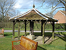 At Rougham, Norfolk. Photo supplied by John Hurst - thanks, John. The sturdy wood-framed shelter carries a carved wooden inscription: "1830 M.N 1890". This inscription almost certainly refers to Marianne North, 1830-1890, a descendant of Roger North KC (1653-1734), the sixth son of the 4th Baron North and who retired to Rougham. She was a much-travelled botanical painter who, in 1879, commissioned a gallery at Kew Gardens to house over 800 of her oil paintings. The Marianne North Pavilion is open to the public - and well worth a visit. | ![]() |