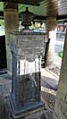 The wooden-boxed, chained and padlocked pump on the green by the church at Birdham, West Sussex. Photo supplied by Paul Snelling - thanks, Paul. On the front there's an inscription: | Click here to